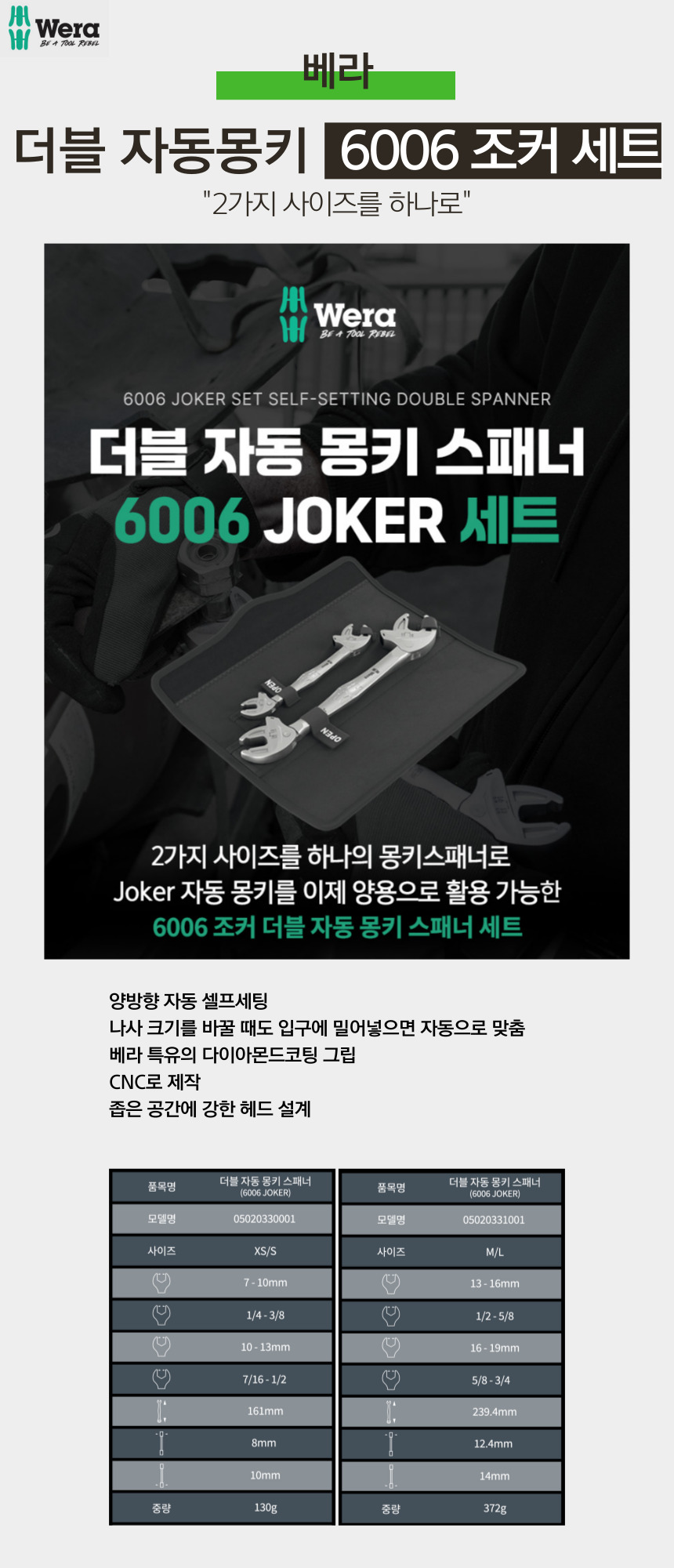 베라 자동몽키 스패너 더블 6006 조커 파우치 2P 세트 경량 미니 렌치 라쳇 광폭